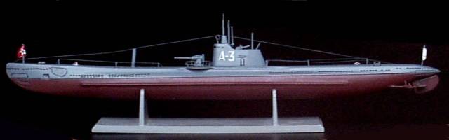 キットはデカールにD3というマーキングが入っていることと、セイル前方のアンテナマストの形状、本来はセイル上にあった10.5インチ砲が甲板上に移されている点などからみて、1932年に竣工、第2次大戦中は北氷洋で作戦していた、「クラスノグヴァルデツ」をモデル化したと思われる。
