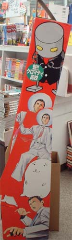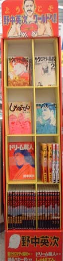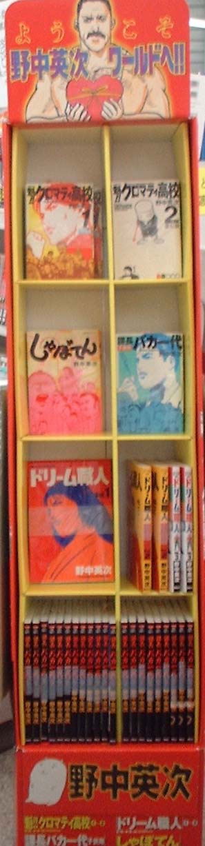 クロマティ高校が大当たりしたため、急遽出版社(取次ぎ?)が作った、 野中先生の作品を陳列するための棚です(段ボール製)
