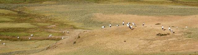 | 3日目、車はいくつもの峠を越え高度を上げて夕方近くポブジカに到着しました。キリッとした冷気が身を包みます。ポブジカはオグロヅル(Black-necked Crane)の越冬地として知られるところです。 | |