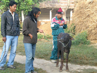 生かそうとするものですが、牛の死骸を得るには自然死を待つしかありません。 そして今日は牛の死骸を入手できないと言うのです。これがなければハゲワシレストランは開店休業です。 会長が解決策を提案しました。水牛なら1頭4,500ルピー(約5,400円)で手に入るというのです。水牛は牛 ではなく彼らの毎日の食料です。 |