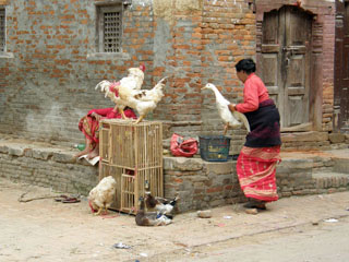 街のあちこちで生贄の鶏やあひる、やぎなどを売る露天商が見られます。