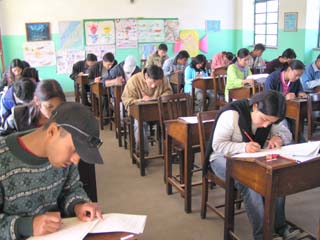 | カトマンズではいつものように「日本語能力試験」の試験勉強です。 試験まで1ヶ月という短期間でしたがみんな毎日よくがんばりました。 そして第二部の授業(飲み会)にもよく付き合ってくれました。 | |