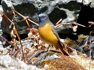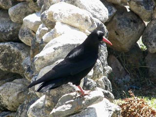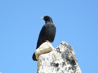 | 少しずつの前進がよかったのでしょうか、高山病も何とか免れています。この先のペリチェ4,252mの村に診療所があり連日救急用のヘリコプターが往復しています。多いときには1日7,8回も見られました。ポーターの背中に担がれて下ってくるトレッカーもいます。シャッターを押す瞬間ちょっと息を止めただけで、動悸と息切れがなかなか治まりません。こんな中での探鳥でしたが、キバシガラス、ベニハシガラス、ルリビタイジョウビタキなどが観察できました。 |