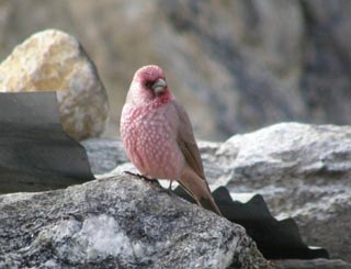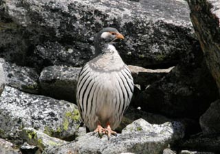 | 頂上直下で10羽ほどのユキバトSnow Pigeon の群れや、チベットセッケイTibetan Snowcock を見ました。夏は5,000mを越えるところまで生息しますが、冬は低地に下りるとのことです。まもなく旅立ちの時期かもしれません。 | |
