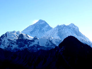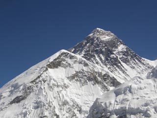 ![]() 頂上からのエベレスト8,848m 右の山はヌプツェ7,879mとローツェ8516m |