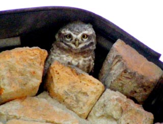 ネパールのアンナプルナ方面へのトレッキングにも同行したことのある山仲間、飲み仲間です。今年の3月までパリパリの現役でした。私がゴーキョピークに出かけている間に、すでに「日本語能力試験」受験生への講座を始めていました。 私がフィールドにしている近郊の田園では、インドコキンメフクロウ君も待っていました。去年と同じねぐらです。 写真:インドコキンメフクロウ Spotted Owlet |