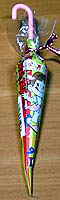 必ず傘の先っぽが折れている不二家パラソルチョコレート。