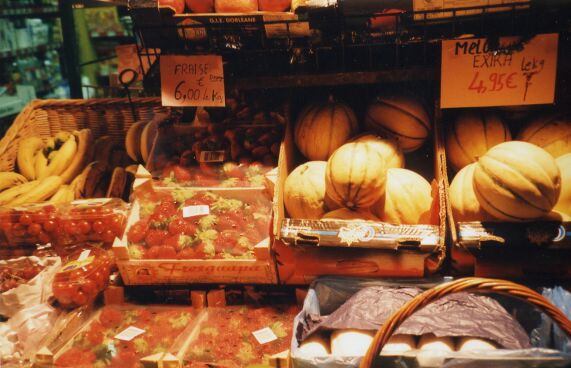 田舎の小さなお店、店の前で野菜を売っていました。もう、何処でもユーロでした。