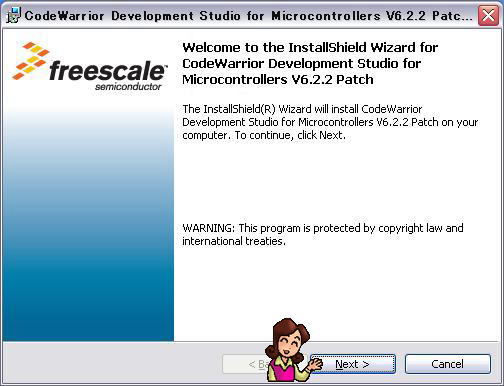 手順はCodeWarriorのインストールとほぼ同じなので彼女が案内します。ダウンロードしたCW MCU v6.2.2 Compiler Patchダブルクリックしてください。