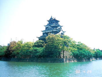 広島城は平城で太田川のデルタ地帯の高低差がほとんど無いところに建てられていて、その分視線に近いせいか天守閣が立派に大きく見えて威厳が感じられる。戦前国宝に指定されていた天守閣は原爆で焼失して今は鉄筋コンクリート造の復興天守だが、外観には以前のように板が張られていて、それなりに重厚な感じがする。