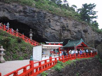 鵜戸神宮は、海幸・山幸の山幸彦の息子で、神武天皇の父であるウガヤフキアエズノミコトを祀っていて、厄除け、漁業、航海、縁結び、安産の神として有名な神社で、また剣法発祥の地としても知られているという。