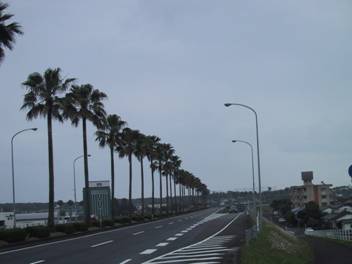 高架道路の中央分離帯には椰子の木が並んでいて、まさに南国といった感じの道が続いていく。 |