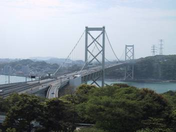 関門海峡を一望、関門橋や海峡を行きかう船を眺めながらしばらく休憩する。