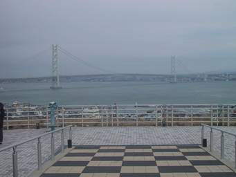 展望台から世界一のつり橋、明石海峡大橋が見える。