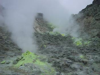 そこが硫黄山だった。まさに地獄のような風景。 霧の摩周湖。