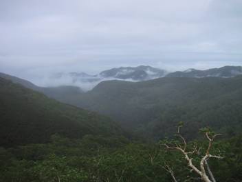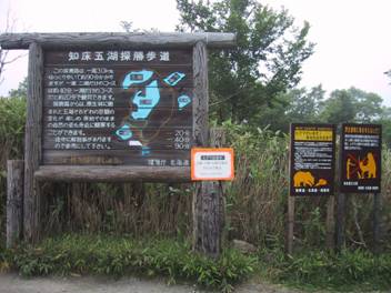 知床五湖。熊の出没のため一湖と二湖しか回れなかった。 知床五湖探索。原生林の中を歩いてゆく。 ダイナミックなワインディングの知床横断道路にて。