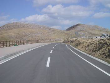 道の両脇に草原が広がり、その間に石灰石が転がっている。