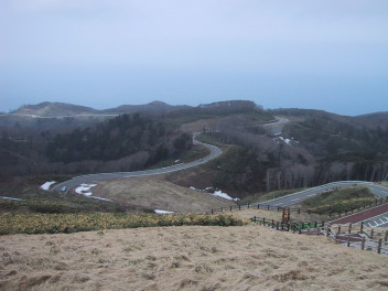津軽半島の先端、龍飛崎に近づくと、断崖絶壁上、360度視界が開けたすばらしいワインディングが続く。