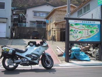 龍飛崎の先端、龍飛漁港の集落にある階段国道入り口にて。