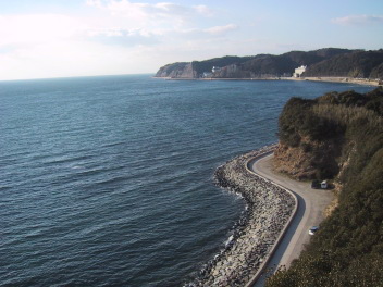 焼津市内を抜けると東海の親不知と呼ばれる大崩海岸に差し掛かる。