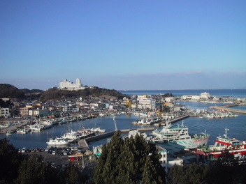 岬に隣接する師崎港のフェリーターミナルにバイクを停め、岬の先端の展望台に登る。