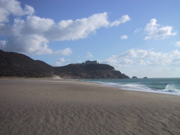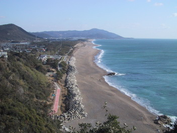 日出の石門から浜名湖まで約70km、片浜十三里と呼ばれる砂浜が続いている。