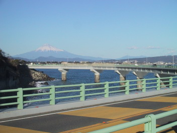 御前崎を越え再び国道150号に入る。所々で前方に富士山が見える。