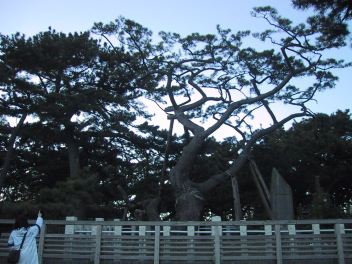 6kmに及ぶ白砂青松の松林が連なるという三保の松原は、新日本三景の一つで、また、羽衣伝説でも有名で、浜には天女が舞いおりたとされる羽衣の松と呼ばれる樹齢約650年の古松があり、近くの御穂神社には、羽衣の切れ端が保存されているという。