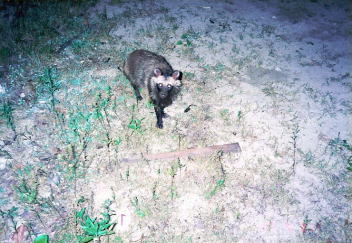 温泉から出ると7時前で日がだんだん暮れてくる。静かな港を眺めながら食事をする。すると匂いに釣られたのか、一匹の狸がテントのそばまでやってきた。野生の狸を見るのは珍しいので写真を撮ると、フラッシュの光に驚いたのかどこかに行ってしまった。翌朝、国道9号を出雲大社に向かう。途中で国道431号に入り出雲大社のそばまで行くがまだ9時前で早いので、先に日御崎に行くことにする。
