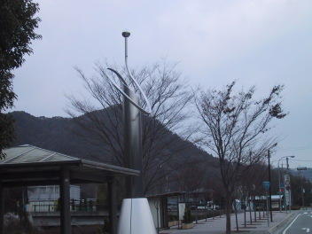 川沿いの小さなロードパークのようなところで、そばには例によって訳のわからないモニュメントが立てられている。