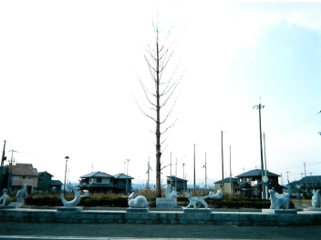 時と方角を示す十二支のモニュメントの中央には、1本のイチョウの木が植えられているのが印象的で、例によってなぜこの場所にあるのかよくわからないモニュメントだった。