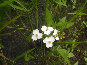 ☆休耕田に咲いていた。これも似た種類が多い、アギナシ、ヘラオモダカとか。ちなみにクワイはオモダカの変種らしい。