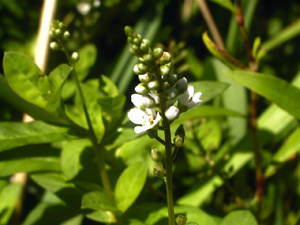 湿地に生える高さ40〜70センチの多年草。葉は互生し、長さ4〜7センチ、花冠は直径5〜6ミリで、白い花を多数つける。☆たんぼの草地に群生している。オカトラノオと少し花期がずれているようだ
