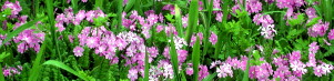 花もいろいろ、チョウジソウとか、クサノオウとか、オオジシバリ、ニョイスミレ、ムラサキサギゴケ、ヒキノカサの群生、他。