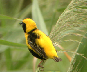 びん沼はちょうどカモ類が飛んだ後で、しばらくぼんやり土手道を歩くと、オウゴンチョウが飛んだ。尾羽も風切も短く、なんかミツバチみたいな感じで、飛ぶ姿も羽ばたきが速く、自分でブンブンいいながら飛ぶ愛嬌のあるへんな鳥。