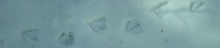 右の写真は雪についていたカモの足跡(間違いない!)内股で思わず歩いているところを想像してしまう。