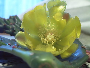 下、いただいたサボテンの花です。足型のような葉に指みたいなつぼみが付いていて咲きます。