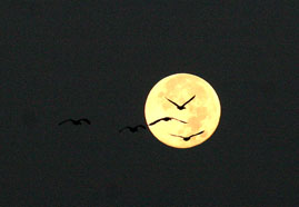 | 振り返ると満月にマガン(ET風(^_^;)) |