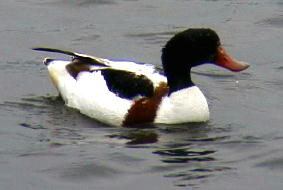 ○ツクシガモ 3羽(12月3日から見られている小群。干潮時は南船橋側の観察路対岸にいた。正午を過ぎて、潮位が上がるとともに観察センター西側のアオサが堆積していた周辺に移動して採餌したことから、フェンスから20m位の近距離で観察できた)