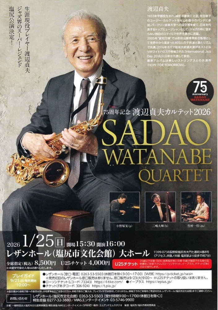 で、近年よく見に行っている塩尻レザンホールで恐らく45年振りに渡辺貞夫