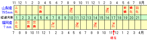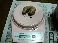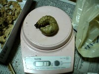 私がオオクワガタの飼育を始めた数年前は、良質な材を使って2年1化で飼育すると太くて かっこいい大型個体が育てられると言われていました。実際、野生のオオクワガタも、大型 のものはカワラタケ等で腐朽したエノキやクヌギなどの良質な成育環境のもと2年1化で育 つと言われています。つまり、いい餌を時間をかけて摂取吸収し、じっくりと成熟することで 大型になれるのだと考えられています。しかし、最近は菌床ビンの普及と質の向上によって、 誰もが1年1化で大型個体(〜♂78mm)を育てられるようになりました。ただ、80mm前後 の超大型個体を育てることは未だ難しく、そのためには飼育技術以外に血統がかなり重要 であると考えています(大統領の血統論)。 ![]() 我が家には1998年7月に孵化した幼虫が未だ蛹化せず成長しているものがいます。そう、 2年1化の経過をたどっているようです。今後どうなるのか楽しみですが、不安もあります。 そこで1つ参考になるデータがありますので比べてみたいと思います(上図参照)。 上段は山梨産オオクワガタ専門の清水くわがたさんが羽化させた♂79.5mmの飼育報告 を参照させてもらってます。1997年11月後半に孵化、その後3回餌交換をし、21ヶ月目 に無事羽化を確認という経過です。下段は私が飼育している幼虫の経過です。清水くわが たさんの幼虫と同じように経過してくれるのなら、そろそろ蛹化してくれるかもしれませんね。 ![]() 1999年8月21日(28g) 1999年11月14日(31g) しかし、30gオーバーまで育った幼虫は全国でも数多く報告されていますが、蛹化不全や 羽化不全で死亡するケースが多いようです。特に1年1化で30g前後になった幼虫は蛹化・ 羽化不全が起こる率が高いようです。これは恐らく、急速に成長したものの十分成熟する ことができず、何らかの無理が生じたためだと考えられます。もし十分に成熟することがで き、より自然の経過に近い2年1化型で育った幼虫であれば蛹化・羽化不全の率も少なく なり、超大型個体の育成が可能となるかもしれません。 |