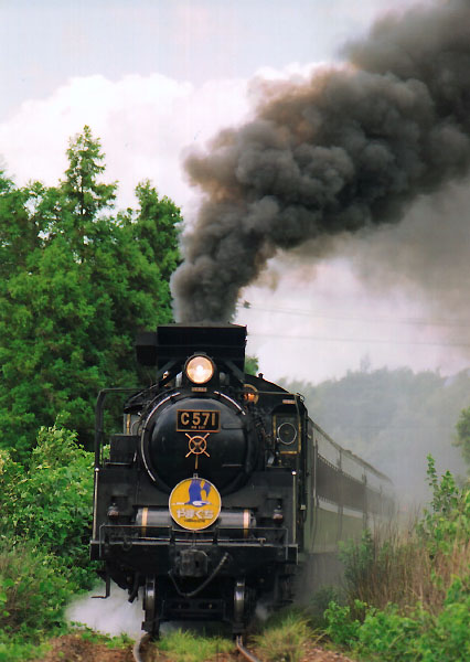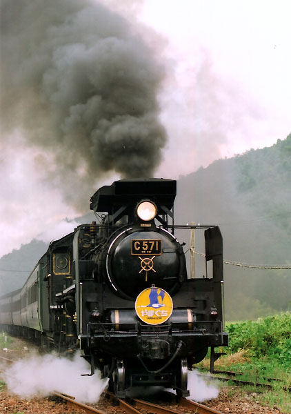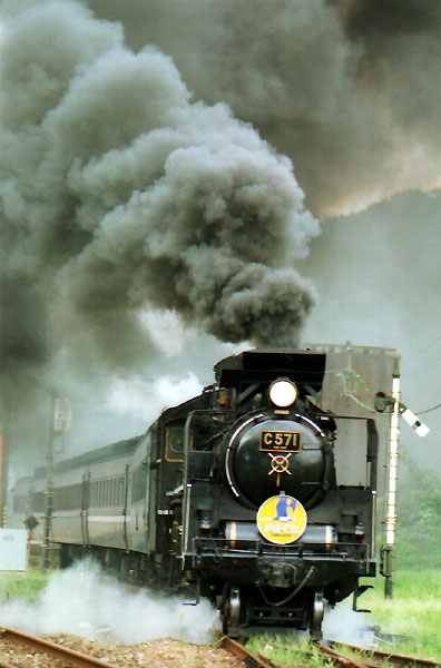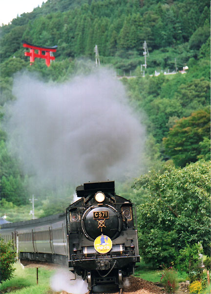 津和野に向かうC571 大山路第一踏切 2002年9月1日