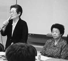 「堂本暁子さんが知事になられて繰り上げ当選した黒岩秩子と申します。まだほやほやで中のことは何もわかりませんが、皆様がこれまでなさってこられたことは実は銀林さんが元同僚だったものですから、いろいろ伺っておりました。私の叔父も叔母も原爆で亡くなって従兄弟たちが孤児になっております。また韓国のことは金嬉老事件にずっと関わっておりましたし、友人にも在日の方がいらしてこのことには心を痛めてまいりましたので、私でもお役に立てれば大変幸いだと思っております。お話伺い、本当に胸を痛めております。どうかこれからよろしくお願いいたします」