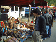 今日は日曜日なので、ギャラリーはお休みである。そこで、のみの市(フリーマーケット)をひやかしたあとパリ郊外のベルサイユ宮殿を探検することになった。夜からは、フクオカさんと別行動をとり、パリに住んでいる私の旧友と久しぶりに再会する予定になっている。 週末になると、のみの市はパリ市のあちこちで催されている。今回は、ポルト・ドゥ・ヴァンブ(千駄ケ谷のイメージ)という、パリ市の南部で催されている市に行った。道路の両脇に布を広げた台がズラリと並び、骨董品ともガラクタともつかない小物類、アンティークな腕時計や指輪などのアクセサリー類が所狭しと陳列されていた。フクオカさんは丹念に見て回り、特に絵画のチェックは入念だった。今回は特に何も買わなかったが、何度か通ううちに掘り出し物に巡り合えるかもしれない。 のみの市を後にしてオーステルリッツ駅(近鉄上本町駅のイメージ)へ行き、そこでRER(高速郊外鉄道)に乗ってベルサイユ宮殿に向かう。ベルサイユへ行く路線は3つあるが、そのうち一つがストのため動かなかったので、もう一つの路線にしたのだが、これがパリの南側を延々と迂回するルートをたどり、約1時間の旅となった。RERは高速鉄道と名乗ってはいるが、のんびりゆっくり走っている。ほとんど地方鉄道のイメージだ。それにしても、電車が走り出してすぐに緑豊かな田園風景に変わったのには驚いた。日本で言えば都心から1時間以上離れたあたり、東京なら大宮か大船の先、大阪なら草津か西明石の先、名古屋なら大垣か豊橋の先まで行かねばお目にかかれないような風景が、パリ市を出たとたんに広がっているのだ。さらに驚くまいことか、沿線風景はみるみるローカル化していき、ついには人家もまばらになって、あたかも原野の中を走っているかのような様相さえ呈してきた。ここは本当に21世紀のパリ近郊なのだろうか?
