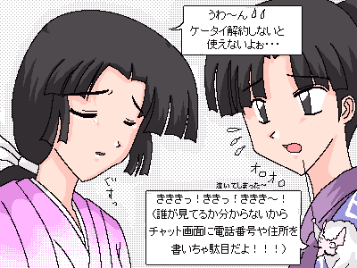 ★もちろん、いけないことですよね。「チャットで盛り上がっているから、ついカキコしてしまった」「たぶん大丈夫だろうと思ってカキコしてしまった」「住所はともかく、ケータイの番号くらいはいいだろうとおもって、ついカキコしてしまった」・・・これは全部ダメです!!!