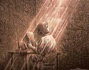「耳をすませば」本編中に「牢獄の中でヴァイオリンを作る少年」の木版画が登場しましたが、この作者である宮崎敬介氏の個展が開催されました。(1996年11月18日〜23日 於 東京・青山 Pinpoint Gallerry)