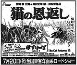 読売新聞の金曜夕刊の2面全面に掲載された「猫の恩返し」公開記念特集。鈴木敏夫プロデューサーへのインタビュー記事を中心に、「猫の恩返し」「ギブリーズ