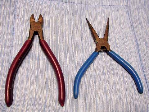 ニッパで配線表面のビニール部分をを剥がすには、穴が空いてる部分に入れて引っ張ります。