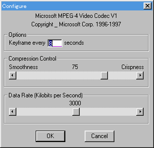 今回はMicrosoft MPEG4 Video Codec V1又はV2を使用します