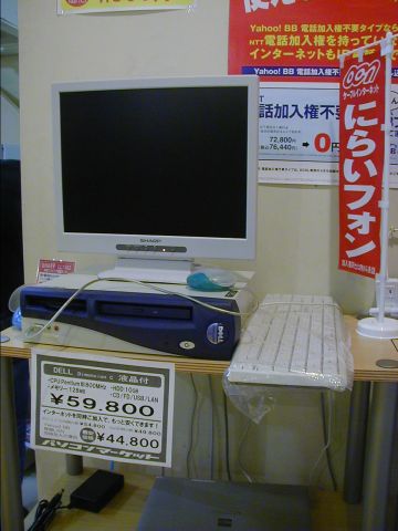 この店ではパソコンと同時にインターネットを申し込むと安くしてくれます(値札の下の価格がそれです)